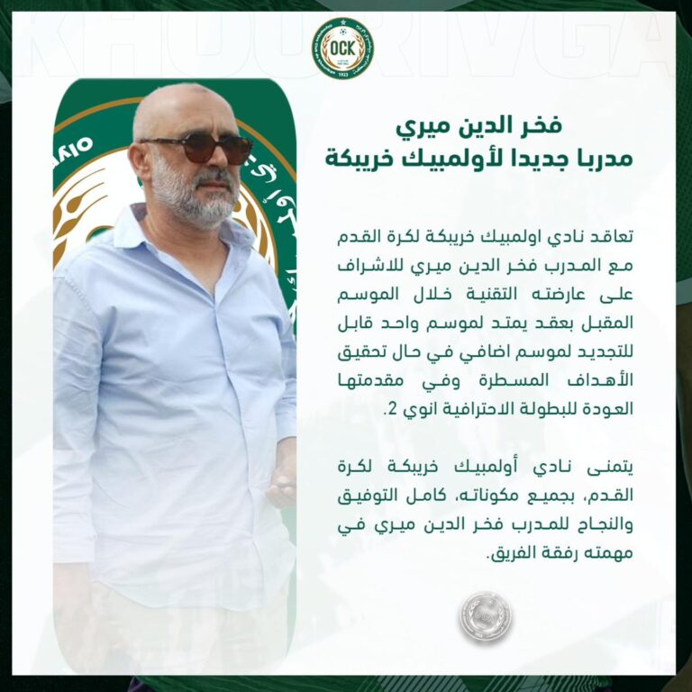 الرئيسية/الرئيسية/فخر الدين ميري مدربا جديدا لفريق أولمبيك خريبكة الرئيسيةالفريق الأول فخر الدين ميري مدربا جديدا لفريق أولمبيك خريبكة فريق التحرير30/08/2025 17 أقل من دقيقة مشاركة المقال : فريق التحرير30/08/2025 17 أقل من دقيقة فيسبوك X لينكدإن Tumblr بينتيريست Reddit VKontakte مشاركة عبر البريد طباعة
